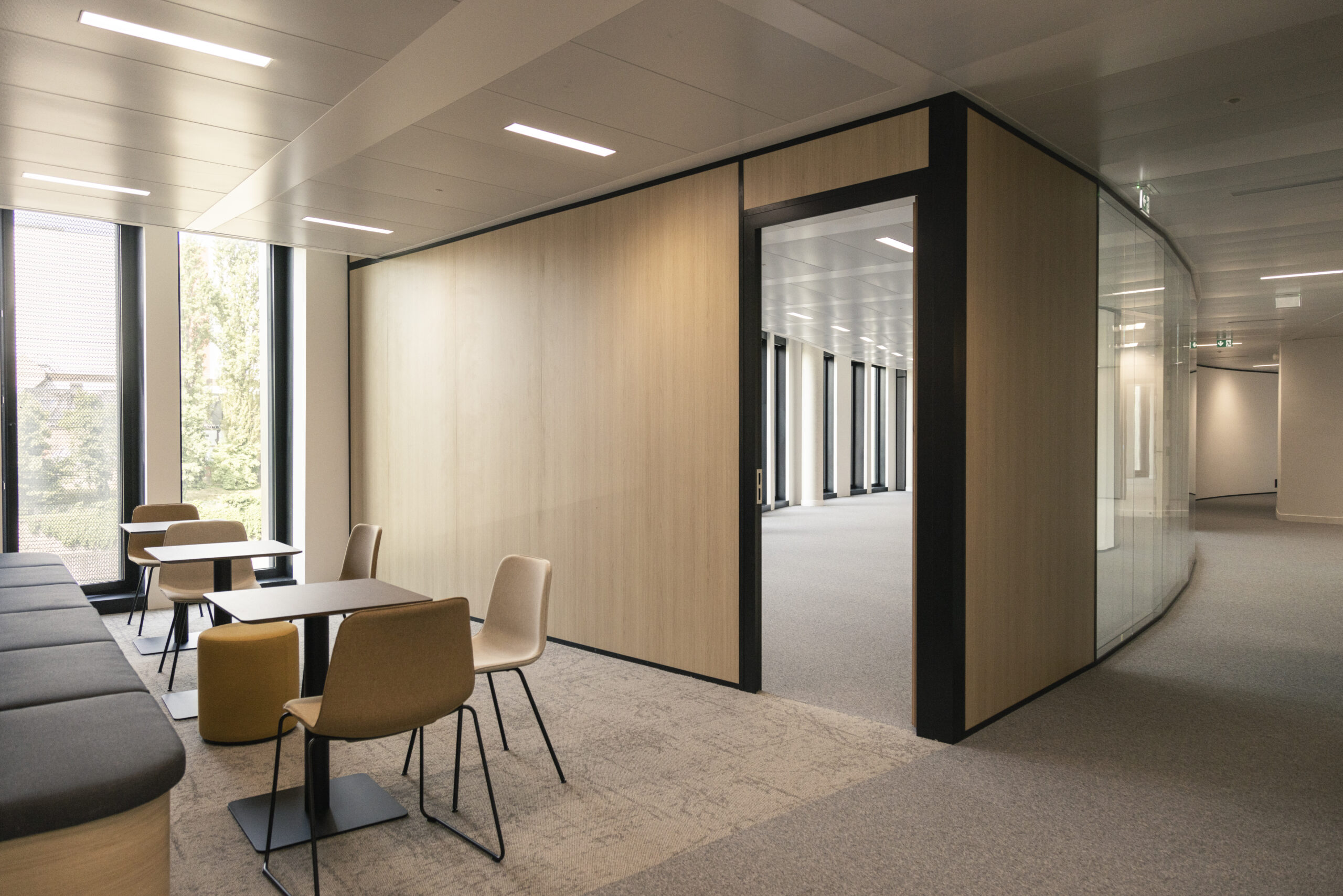 Conception et réalisation de l'aménagement intérieur d’un plateau de bureaux avec creation d'espaces communs.